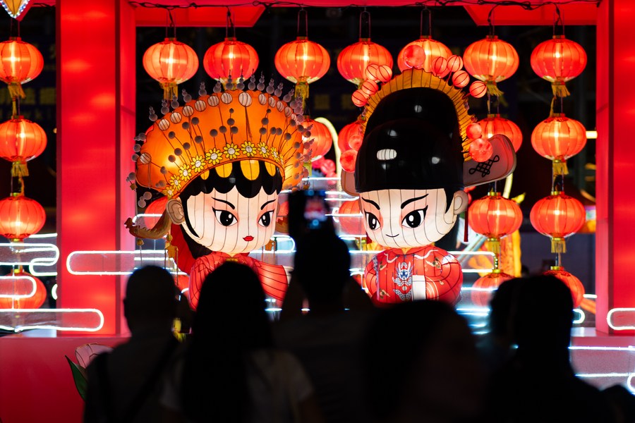 People visit a Mid-Autumn lantern fair at Victoria Park in Hong Kong, south China, Sept. 23, 2023. (Xinhua/Zhu Wei)