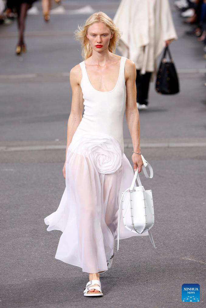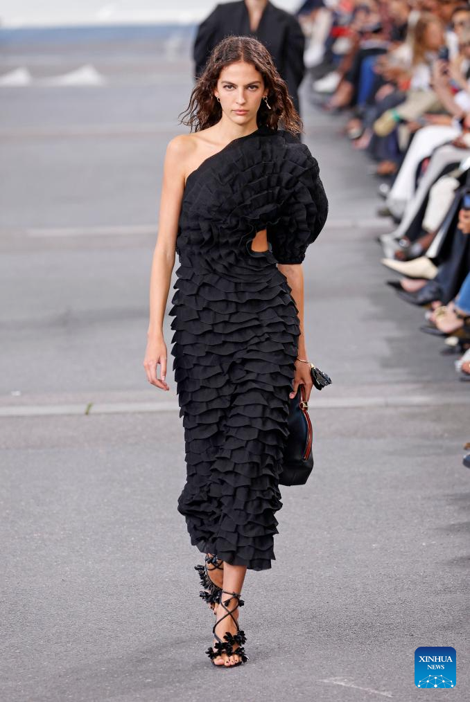 A model presents a creation of Chloe's Spring/Summer 2024 ready-to-wear collections during the Paris Fashion Week in Paris, France, on Sept. 28, 2023. (Photo by Piero Biasion/Xinhua)