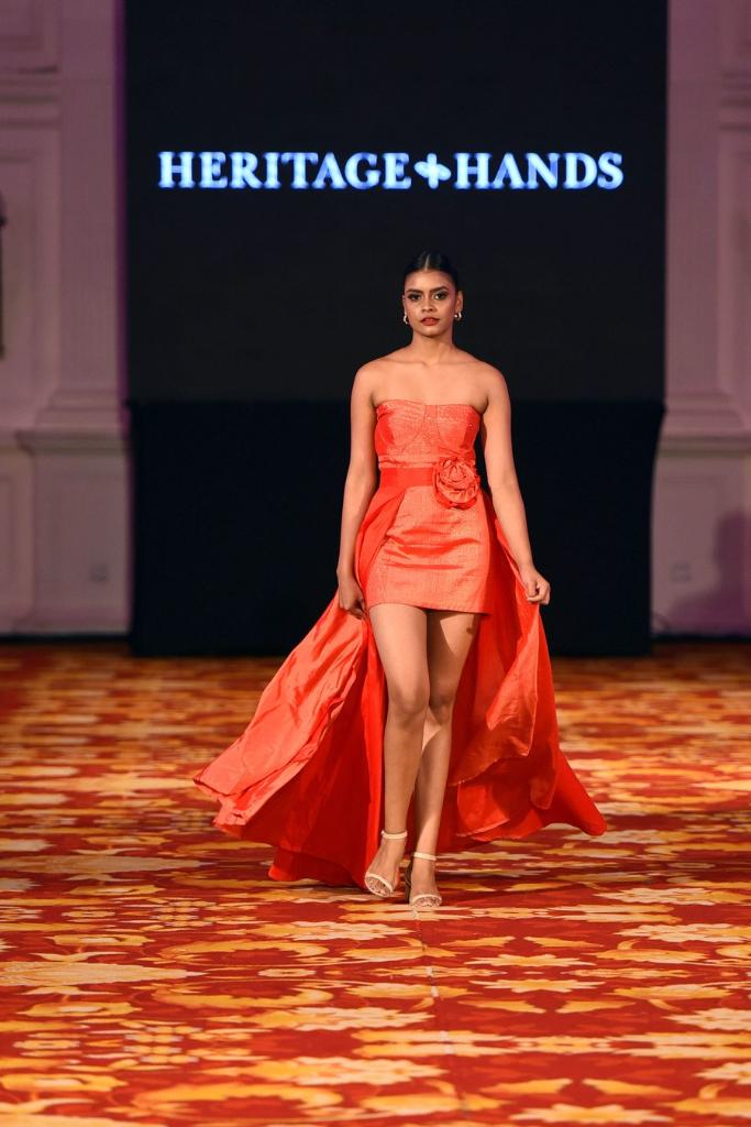 A model presents a creation during the Ceylon Heritage Festival Fashion Show in Colombo, Sri Lanka, on Sept. 27, 2023. (Photo by Gayan Sameera/Xinhua)