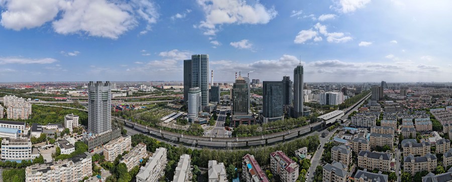 This aerial panoramic photo taken on Oct. 17, 2022 shows a view of the China (Shanghai) Pilot Free Trade Zone in Waigaoqiao Free Trade Zone, east China's Shanghai. (Xinhua/Fang Zhe)