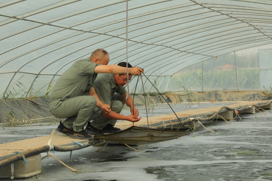 Jiang experimented in different conditions -- laying the pond bottom with sand, mud or plastic sheet, and trying different proportions of salt and micronutrients. After spending around 1 million yuan (136,800 U.S. dollars), he has managed to bring the seed's survival rate above 80 percent.