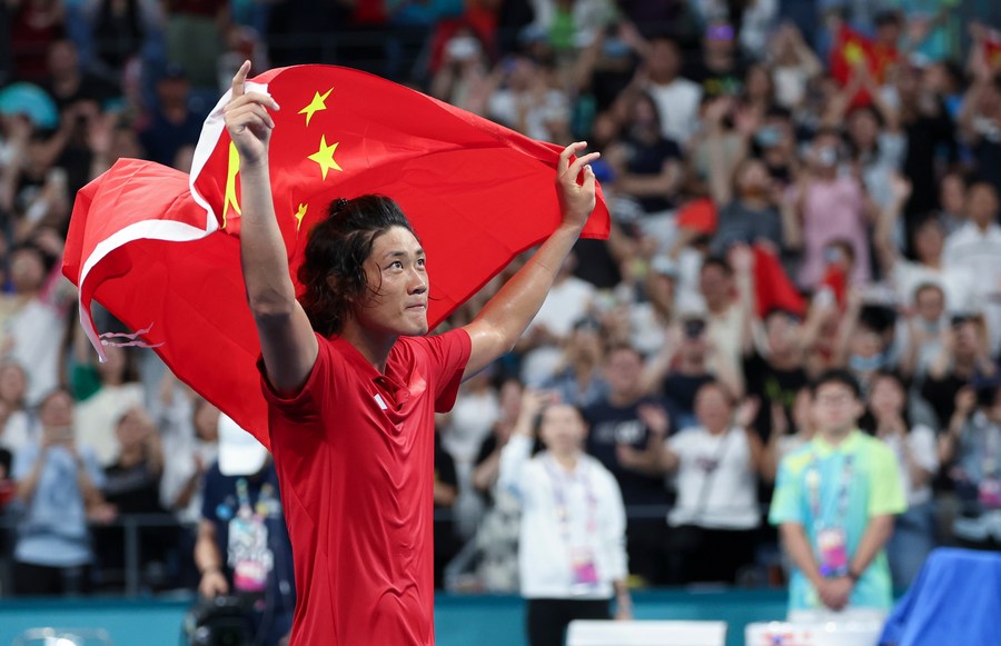 HANGZHOU, Sept. 30 (Xinhua) -- Local favorite Zhang Zhizhen beat Japan's Yosuke Watanuki 6-4, 7-6(7) at the Hangzhou Asian Games on Saturday to capture China's first men's singles gold medal in nearly three decades.