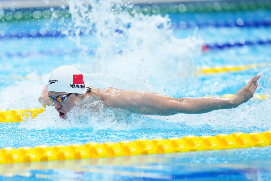 Wang Shun of China competes in the men's 400m individual medley heat on Sept. 26, 2023. (Xinhua/Du Yu)