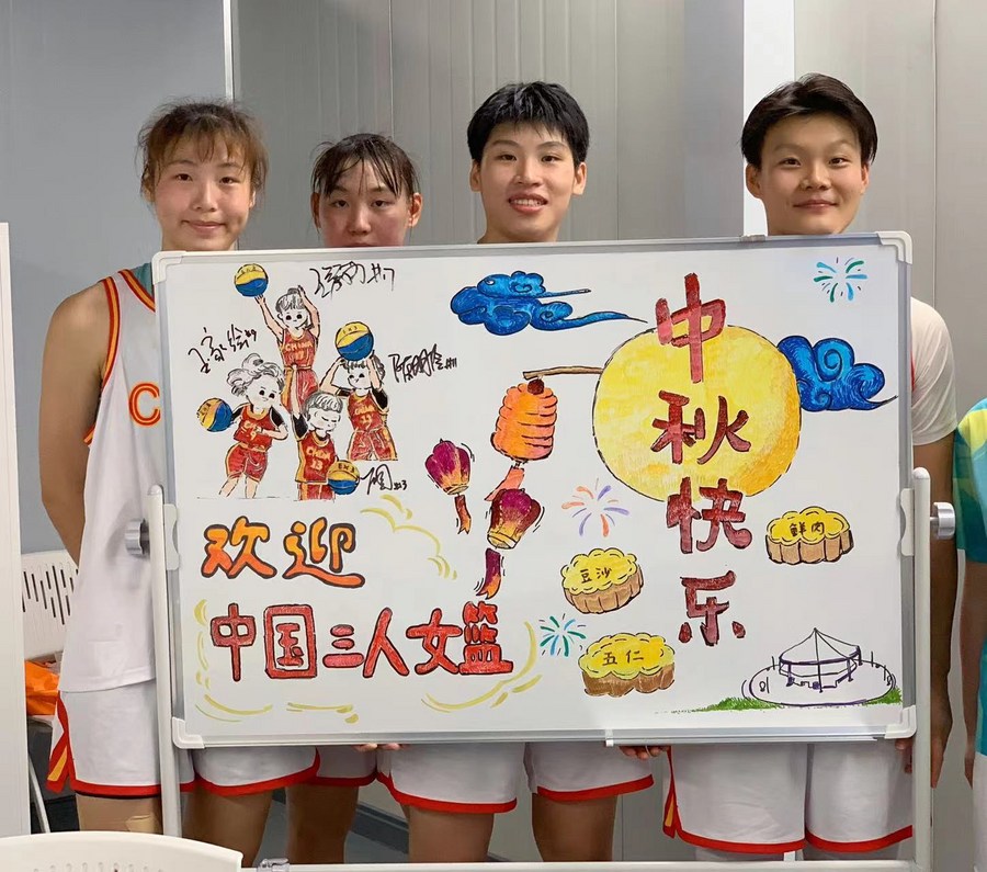 At the 3x3 basketball venue, volunteers dedicated a day to create a painting for China's women's 3x3 basketball team, extending warm wishes for a "Happy Mid-Autumn Festival" and success in the tournament. Yu Enxi, one of the 307 volunteers, emphasized their aim to offer overseas guests an "opportunity to relish the festival and gain deeper insights into Chinese culture."