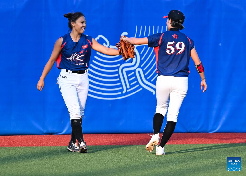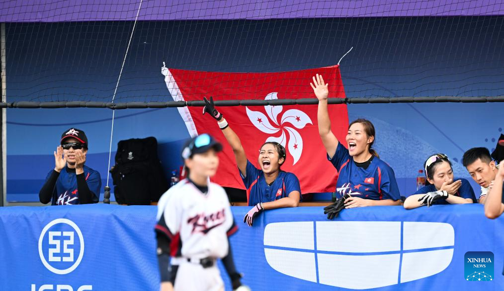 Athletes of China's Hong Kong react during Placement Round of Softball Women between China's Hong Kong and South Korea at the 19th Asian Games in Shaoxing, east China's Zhejiang Province, Sept. 29, 2023. (Xinhua/Yang Guanyu)