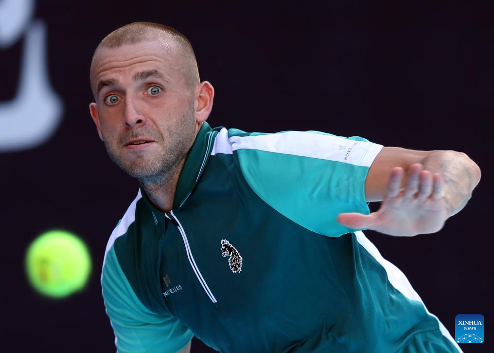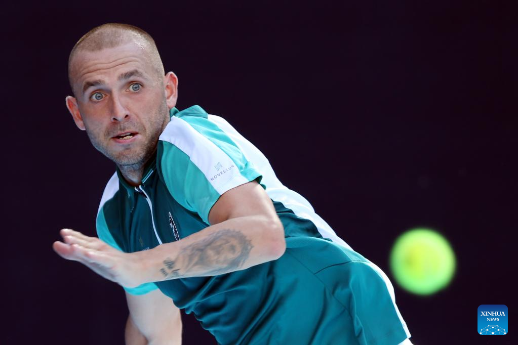 Britain's Daniel Evans competes against Italy's Jannik Sinner during the men's singles first round match at 2023 China Open tennis tournament in Beijing, capital of China, Sept. 29, 2023. (Xinhua/Luo Yuan)