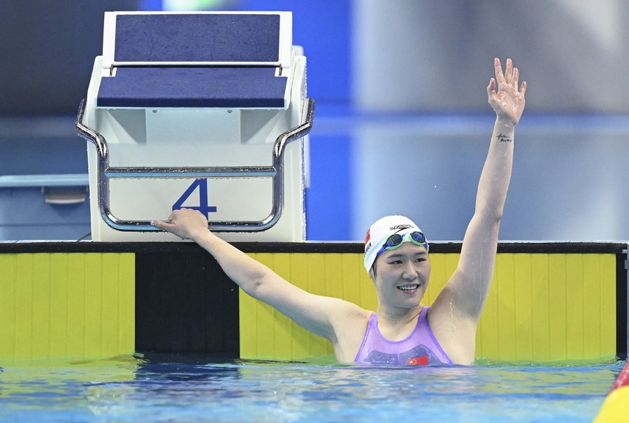 Ye Shiwen reacts after winning the women's 200m breaststroke, Sept. 28, 2023. (Xinhua/Xue Yuge)