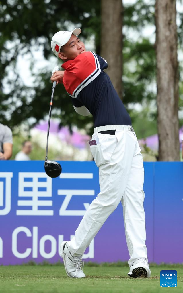 Chen Guxin of China competes during the Men's Individual Round 3 of Golf at the 19th Asian Games in Hangzhou, east China's Zhejiang Province, Sept. 30, 2023. (Xinhua/Cheng Tingting)