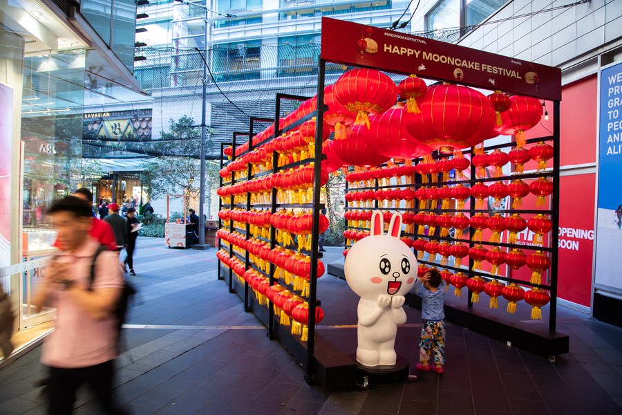 As the Mid-Autumn Festival approaches, many places in Singapore are decorated with lanterns to celebrate the family reunion day for Chinese descendants, attracting locals and tourists to enjoy the Chinese traditional culture.