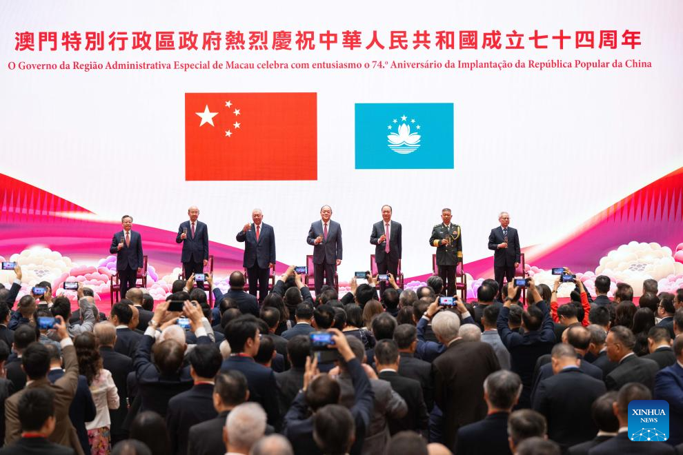 Macao Special Administrative Region government holds a reception to celebrate the 74th anniversary of the founding of the People's Republic of China in south China's Macao, Oct. 1, 2023. (Xinhua/Cheong Kam Ka)