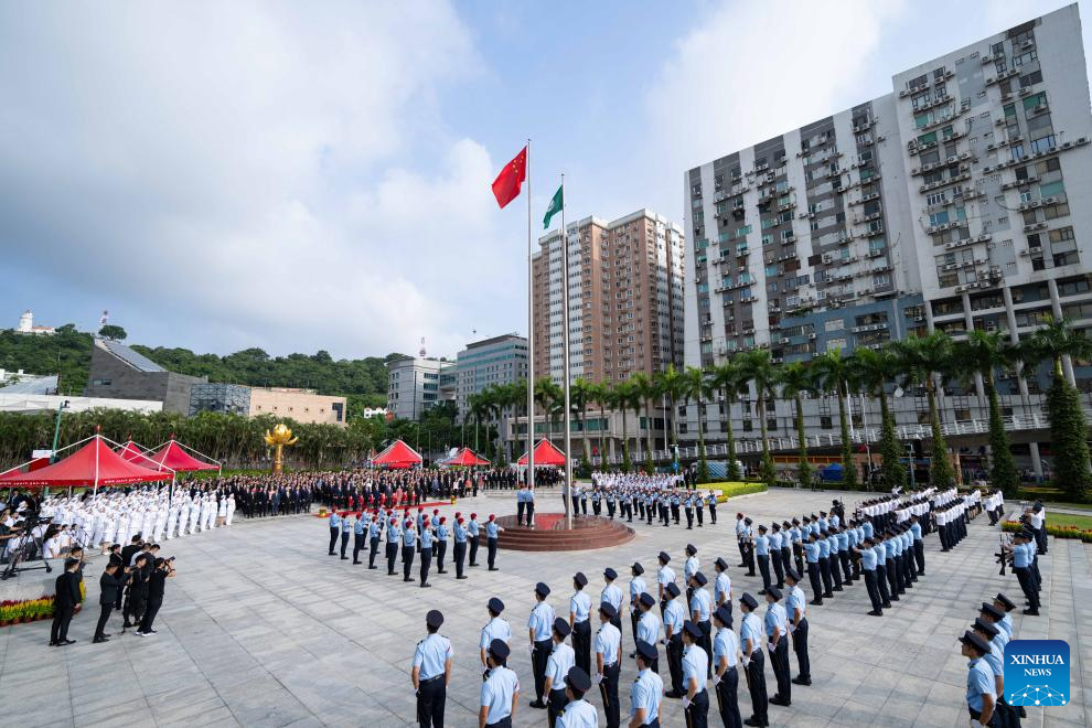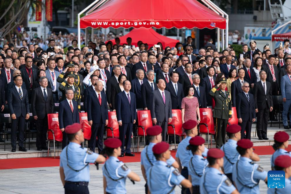 MACAO, Oct. 1 (Xinhua) -- China's Macao Special Administrative Region (SAR) on Sunday held a series of events to celebrate the National Day, including a flag-raising ceremony, a running event, a reception and a fireworks show.