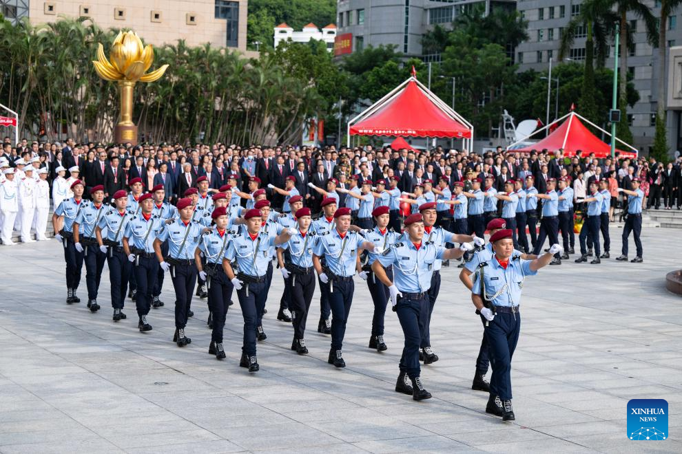 Macao Special Administrative Region government holds a flag-raising ceremony to celebrate the 74th anniversary of the founding of the People's Republic of China in south China's Macao, Oct. 1, 2023. (Xinhua/Cheong Kam Ka)