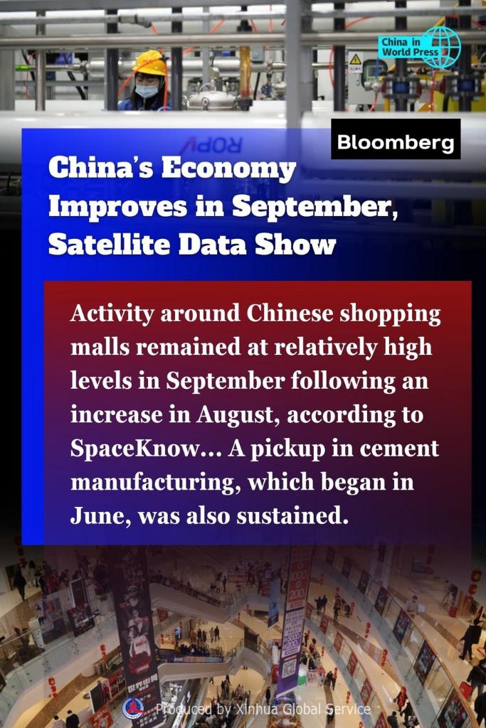 Satellite data analysis by SpaceKnow sees a stronger recovery for Chinese economy in September, according to Bloomberg.