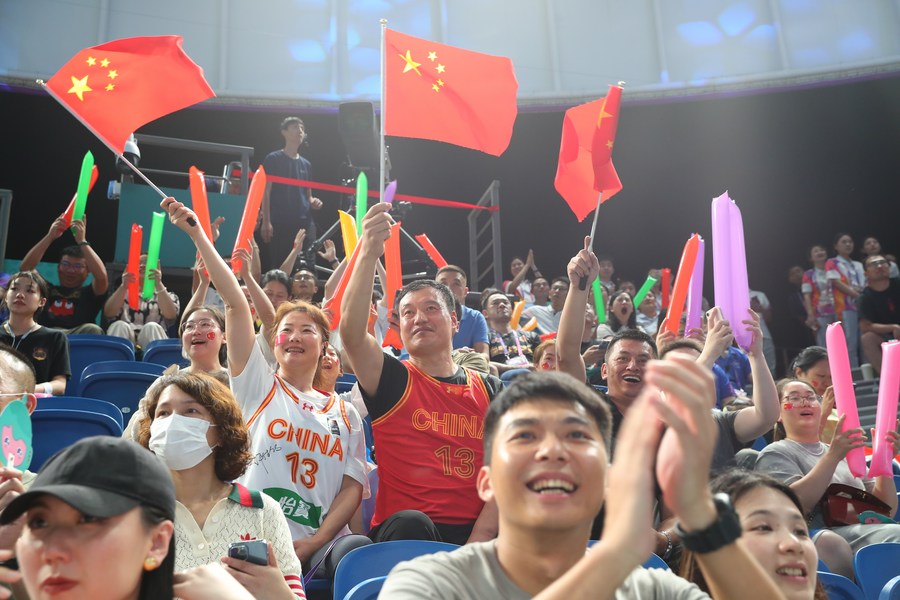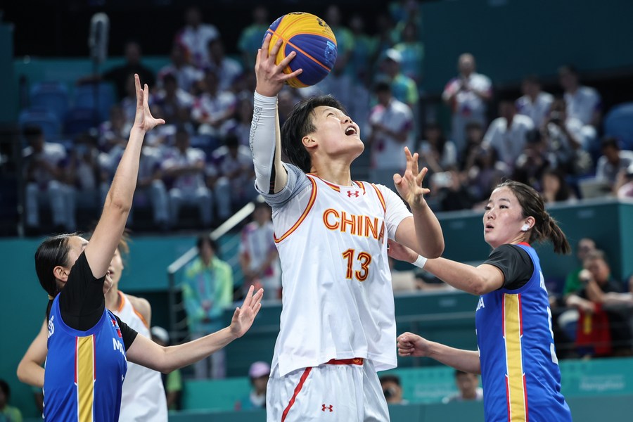 To the delight of hundreds of home spectators, China's women's 3x3 basketball team beat Mongolia 21-12 to retain their Asian Games title. As Sunday marked the 74th anniversary of the founding of PR China, the triumph held extra significance to the Chinese players.