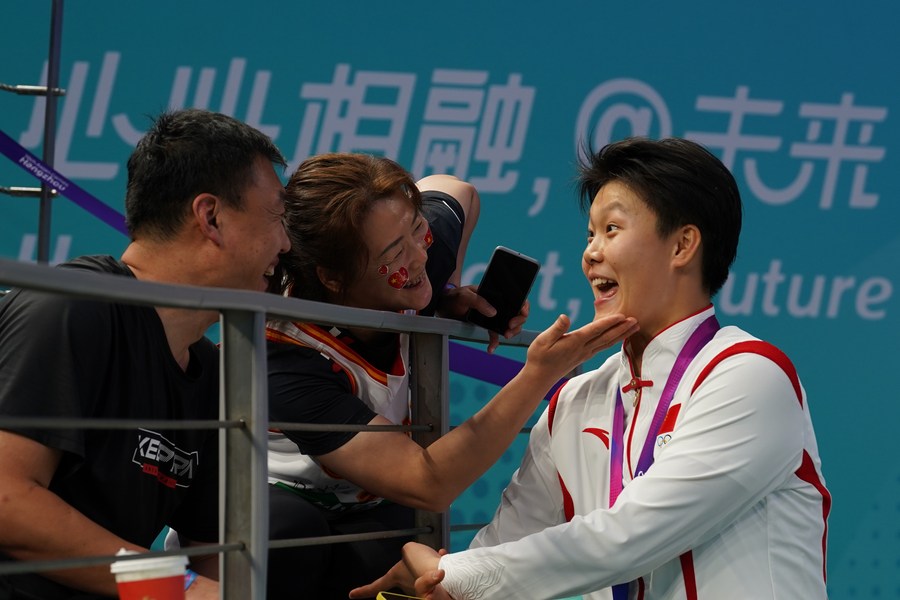 Throughout the Hangzhou Asiad, Wan Bingcai and his wife wore No. 13 jerseys during China's games. "Thirteen is the number of her national team's jersey," said the father. "I feel so proud of my daughter."
