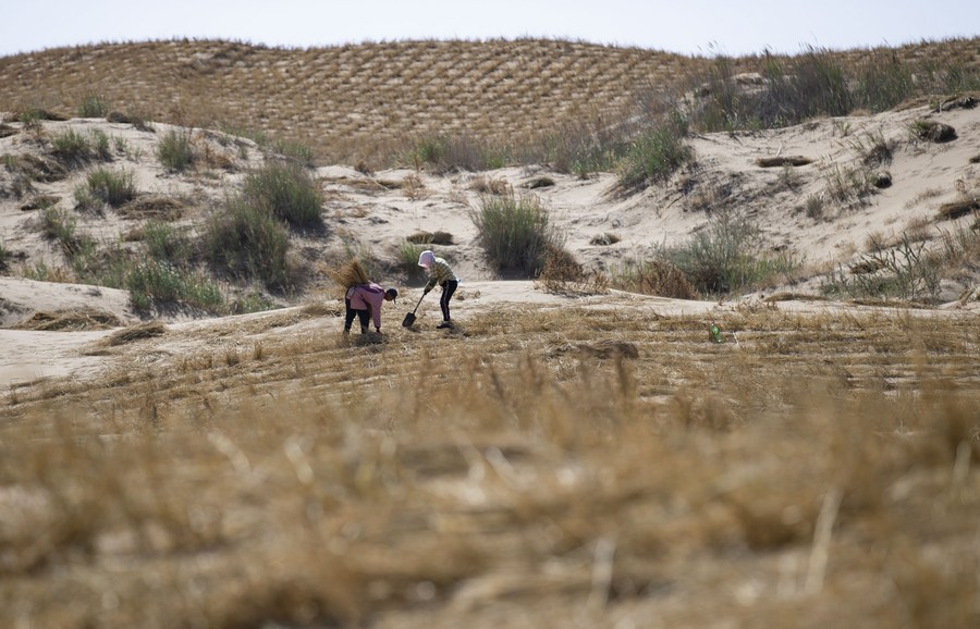 YINCHUAN, Oct. 2 (Xinhua) -- When Ahmed Nazal Nuri, an official from the League of Arab States' environment and climate affairs department, saw farmers in northwest China's Ningxia Hui Autonomous Region using a bale of hay to fix sand on a sand dune, he was amazed by this simple yet effective technique.