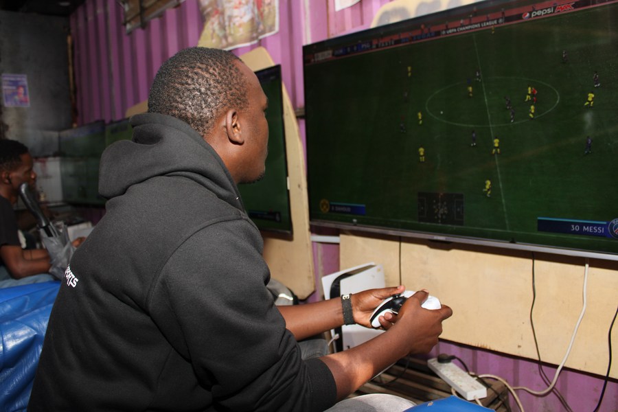 Nick Kibe, a player in electronic sports, plays a game of FIFA in Nairobi, capital of Kenya, on Nov. 7, 2022. (Photo by Chrispinus Omar/Xinhua)