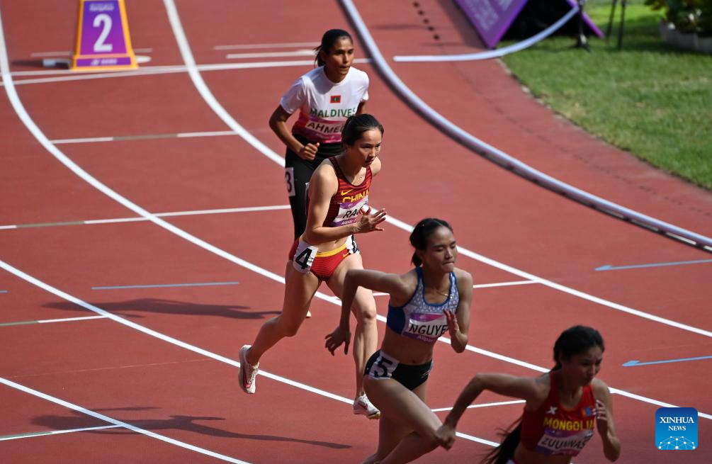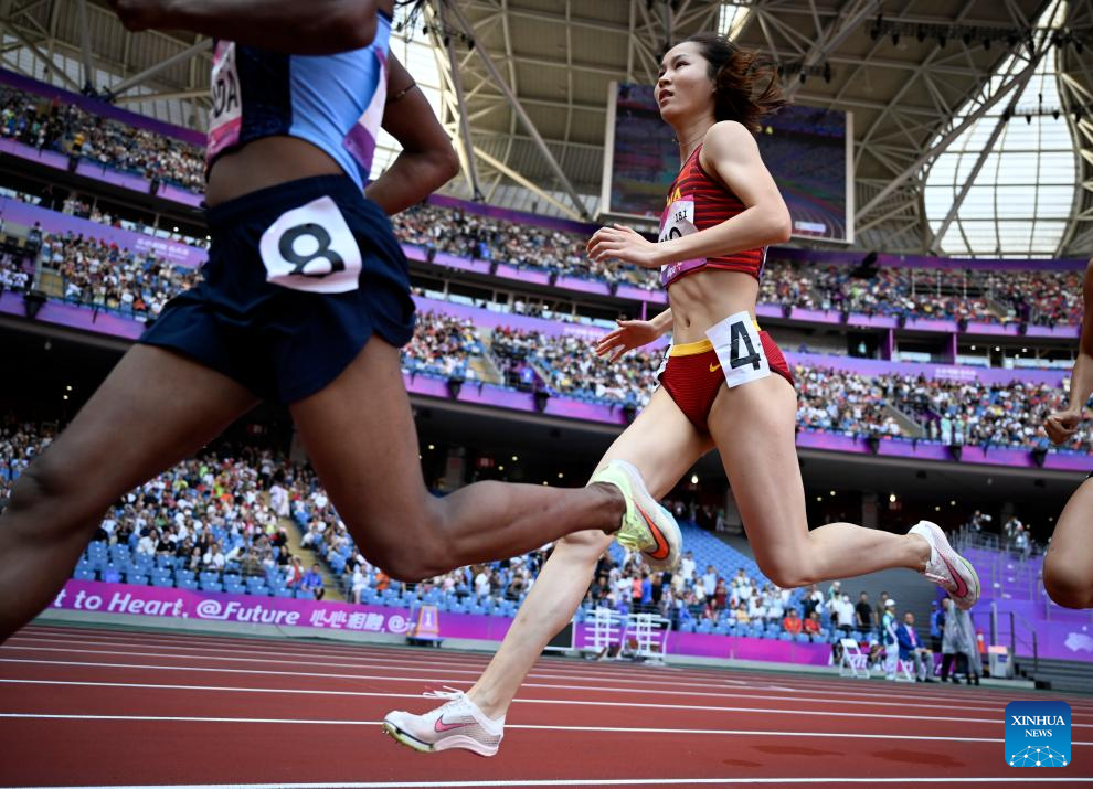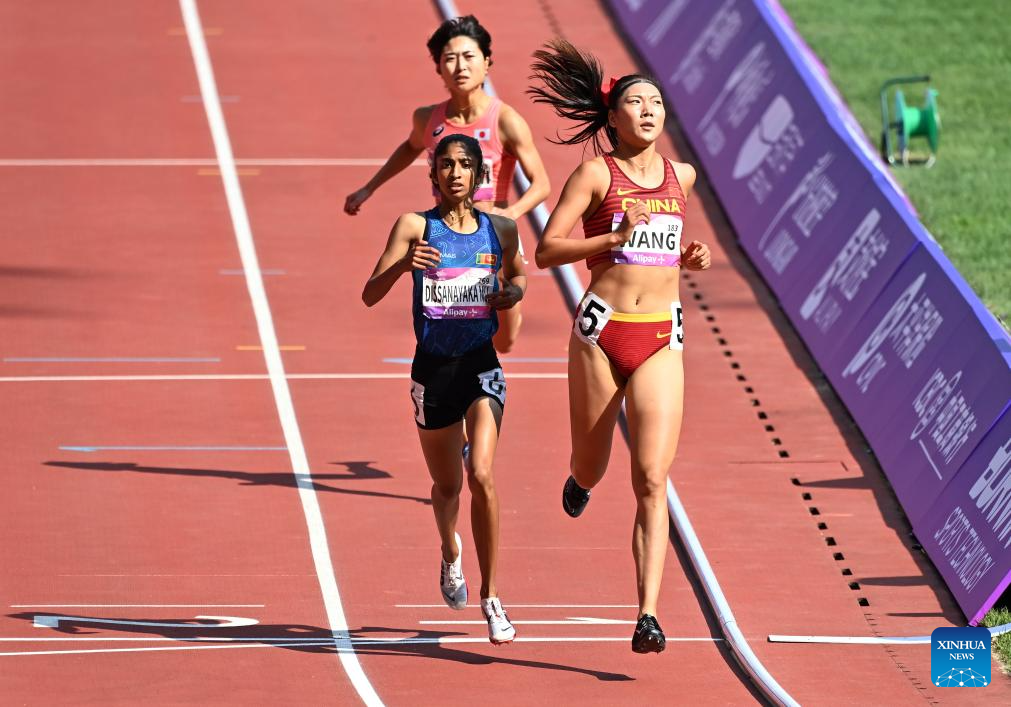 Rao Xinyu of China competes during the Women's 800m Heat of Athletics at the 19th Asian Games in Hangzhou, east China's Zhejiang Province, Oct. 3, 2023. (Xinhua/Song Yanhua)