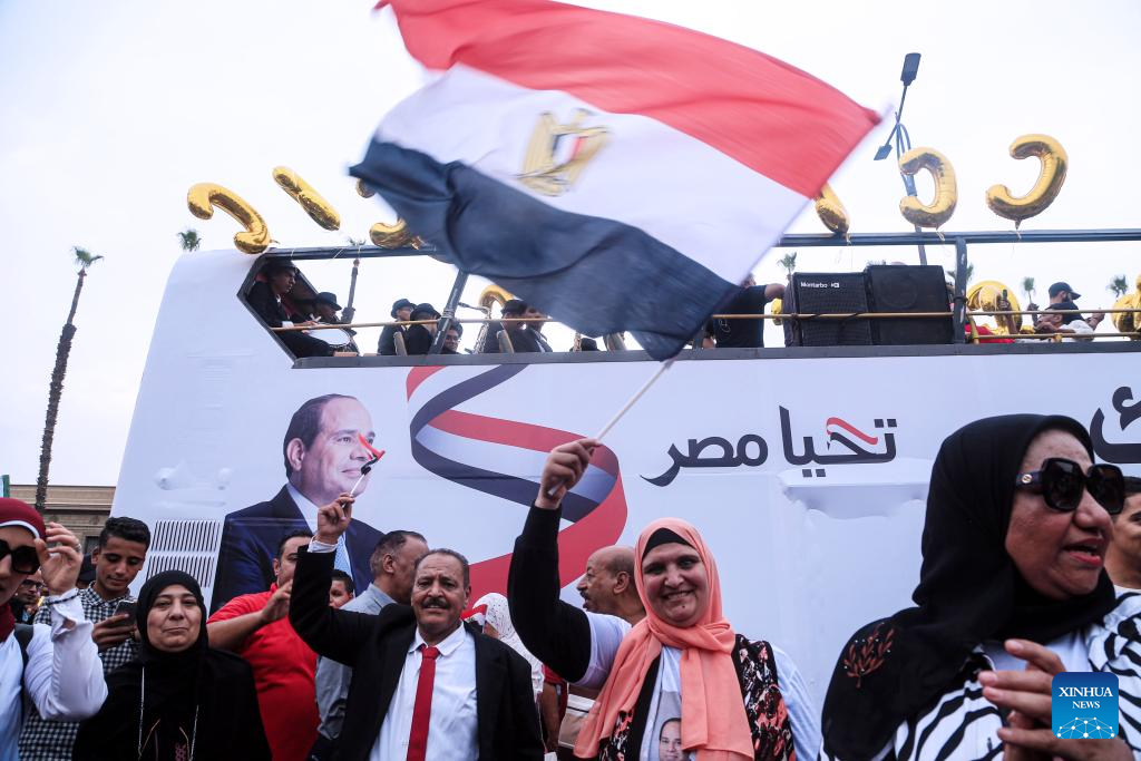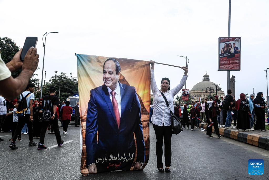 Supporters of Egyptian President Abdel-Fattah al-Sisi take part in a rally in Cairo, Egypt, on Oct. 2, 2023. Sisi announced on Monday that he will run for the upcoming presidential election slated for December this year. (Xinhua/Ahmed Gomaa)