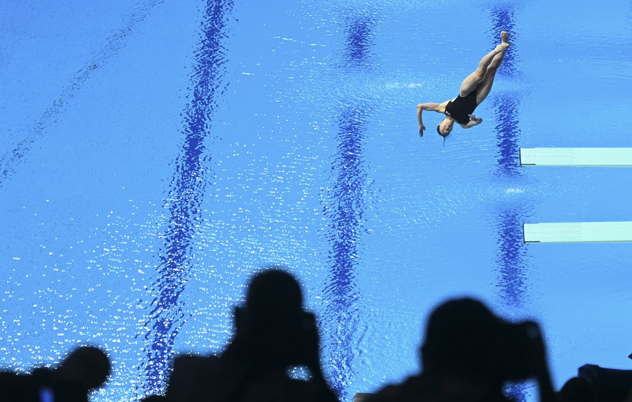 Kim Nahyun of South Korea competes during Women's 1m Springboard Final of Diving at the 19th Asian Games in Hangzhou, east China's Zhejiang Province,Oct. 2, 2023. (Xinhua/Huang Zongzhi)