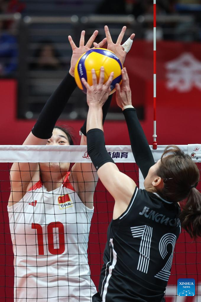HANGZHOU, Oct. 4 (Xinhua) -- China defeated South Korea in the women's volleyball Pool E to claim the second straight victory and book a spot in the semifinals at the Hangzhou Asian Games on Wednesday.