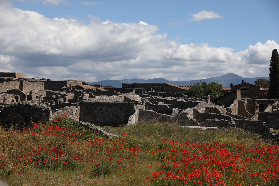 Photo taken on April 30, 2019 shows the Archaeological Park of Pompeii in Italy. Pompeii was an ancient Roman city near modern Naples in Italy. It was buried by an eruption of the Vesuvius volcano in 79 A.D.. (Xinhua/Cheng Tingting/Courtesy of the Archaeological Park of Pompeii)