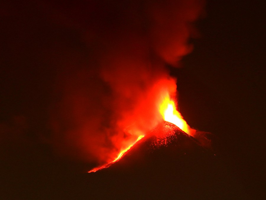 This photo taken on Aug. 14, 2023 shows the Mount Etna volcano during its eruption in Catania, Sicily, Italy. (Str/Xinhua)