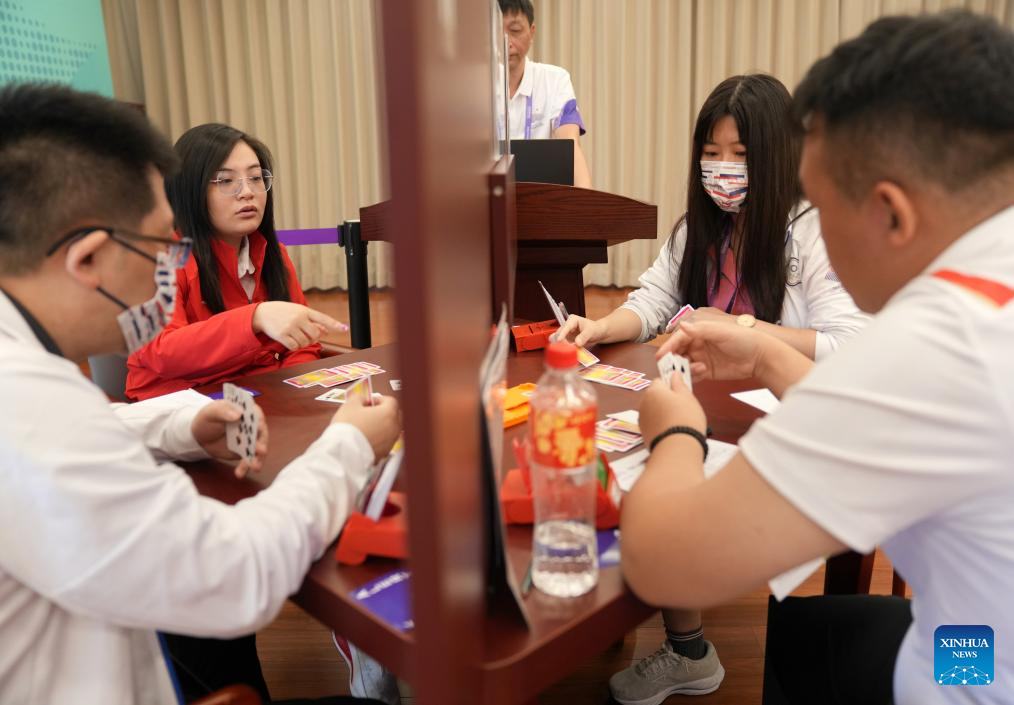 Team China compete against Team Chinese Taipei during the Mixed Team Final of Bridge at the 19th Asian Games in Hangzhou, east China's Zhejiang Province, Oct. 5, 2023. (Xinhua/Han Chuanhao)