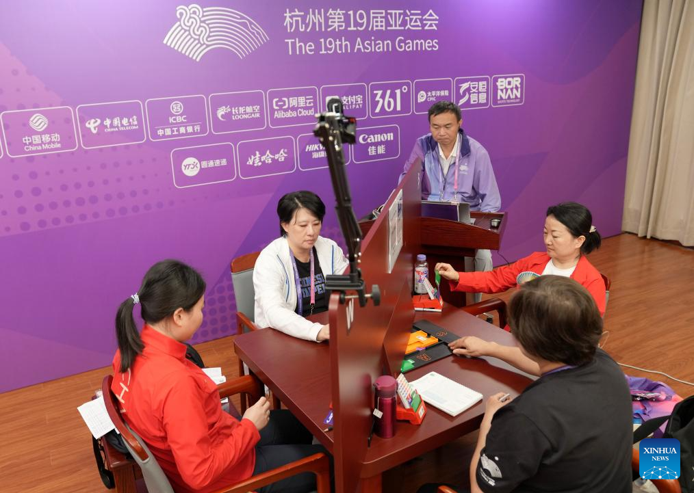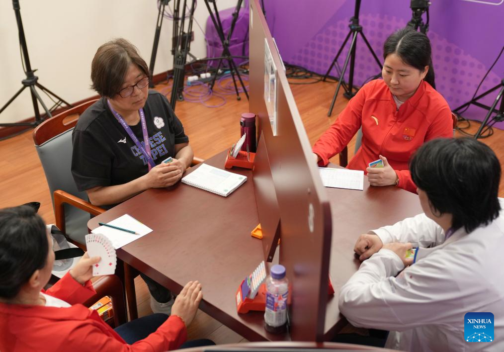 Team China compete against Team Chinese Taipei during the Women's Team Final of Bridge at the 19th Asian Games in Hangzhou, east China's Zhejiang Province, Oct. 5, 2023. (Xinhua/Han Chuanhao)