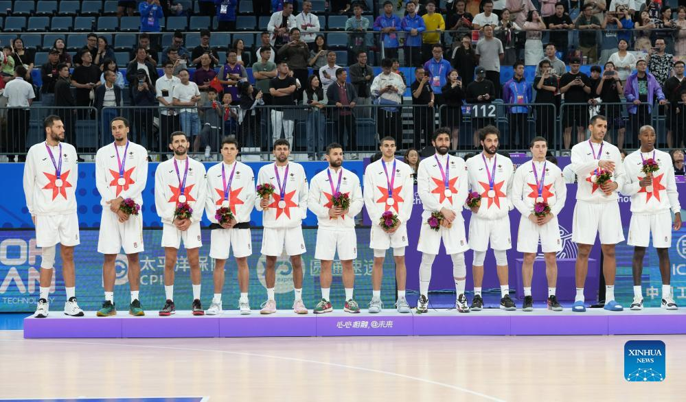 Team Jordan attend medal ceremony for the Men's Basketball at the 19th Asian Games in Hangzhou, east China's Zhejiang Province, Oct. 6, 2023. (Xinhua/Meng Yongmin)