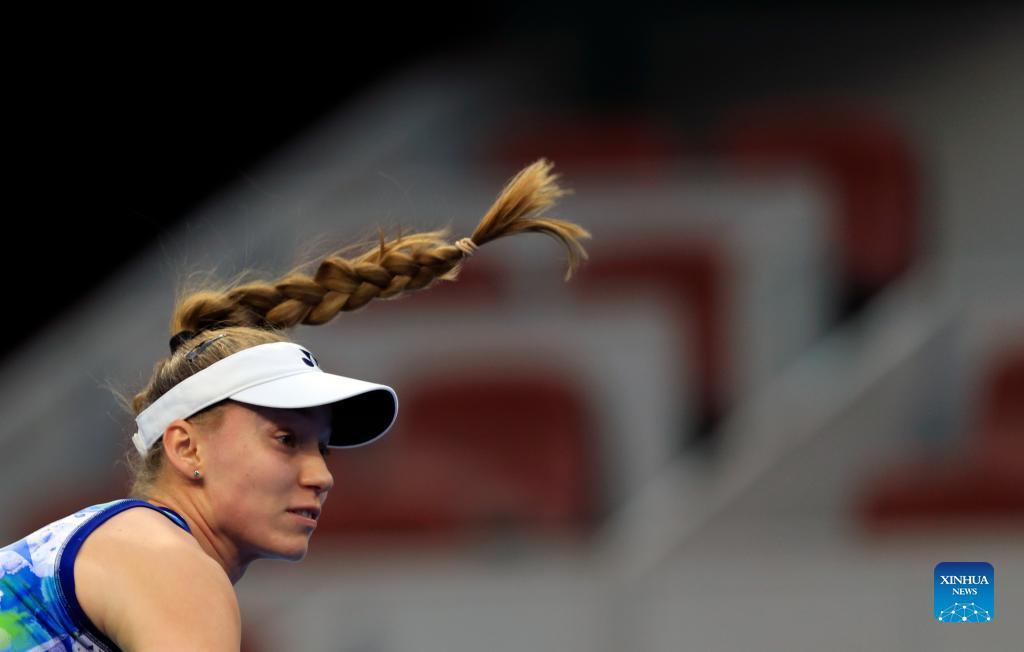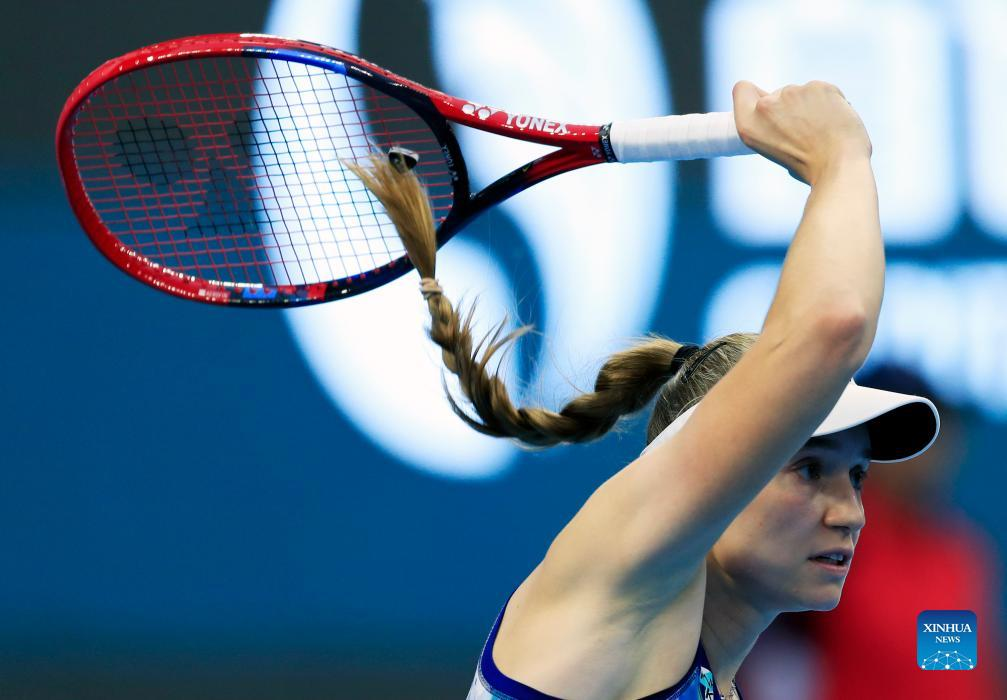 Elena Rybakina of Kazakhstan competes during the women's singles semifinal between Elena Rybakina of Kazakhstan and Liudmila Samsonova of Russia at China Open tennis tournament in Beijing, capital of China, Oct. 7, 2023. (Xinhua/Luo Yuan)