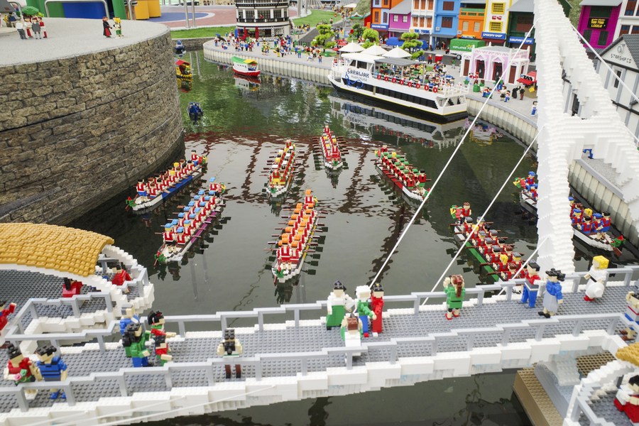 This photo taken on Oct. 6, 2023 shows the dragon boat racing scene made by Lego blocks in Legoland Malaysia. (Xinhua/Cheng Yiheng)