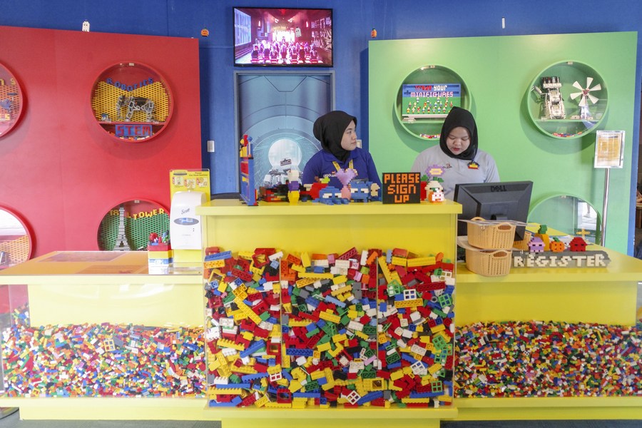 Staff prepare Lego bricks for visitors in Legoland Malaysia on Oct. 6, 2023. (Xinhua/Cheng Yiheng)■