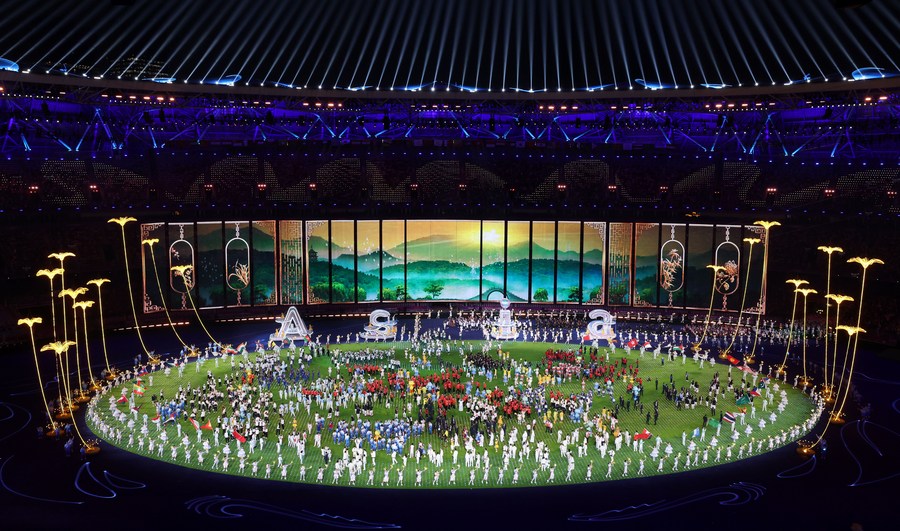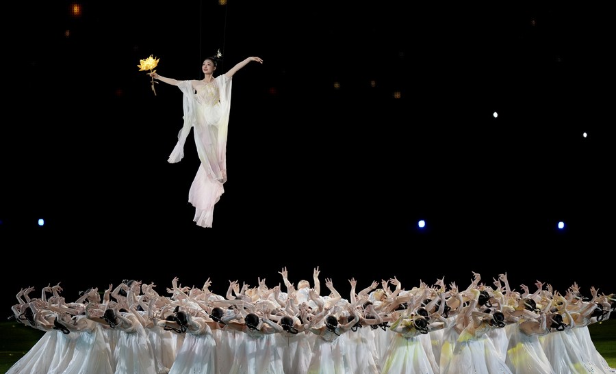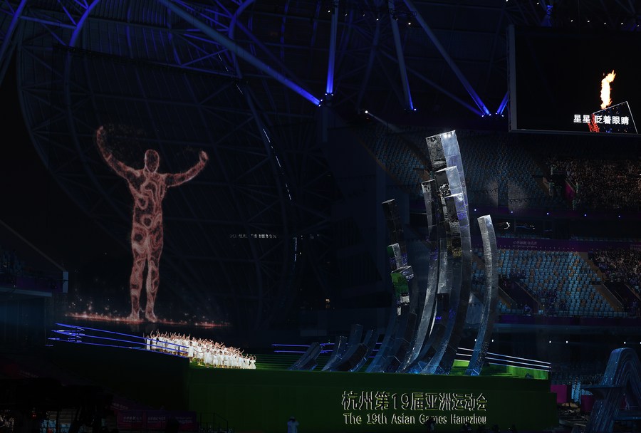 Artists perform during the closing ceremony of the 19th Asian Games at the Hangzhou Olympic Sports Center Stadium in Hangzhou, east China's Zhejiang Province, Oct. 8, 2023. (Xinhua/Sun Fei)