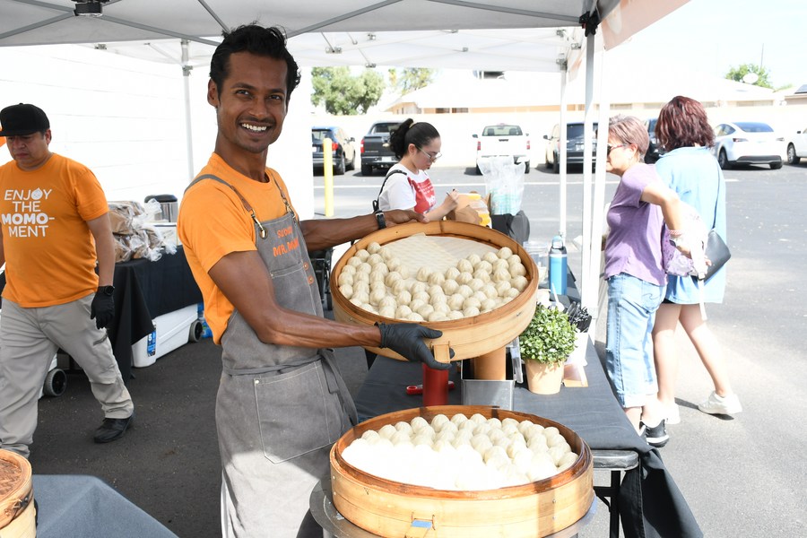 A vendor displays baos during the Arizona Bao and Dumpling Festival in Glendale, the United States, Oct. 7, 2023. (Photo by Sui Xuguang/Xinhua)