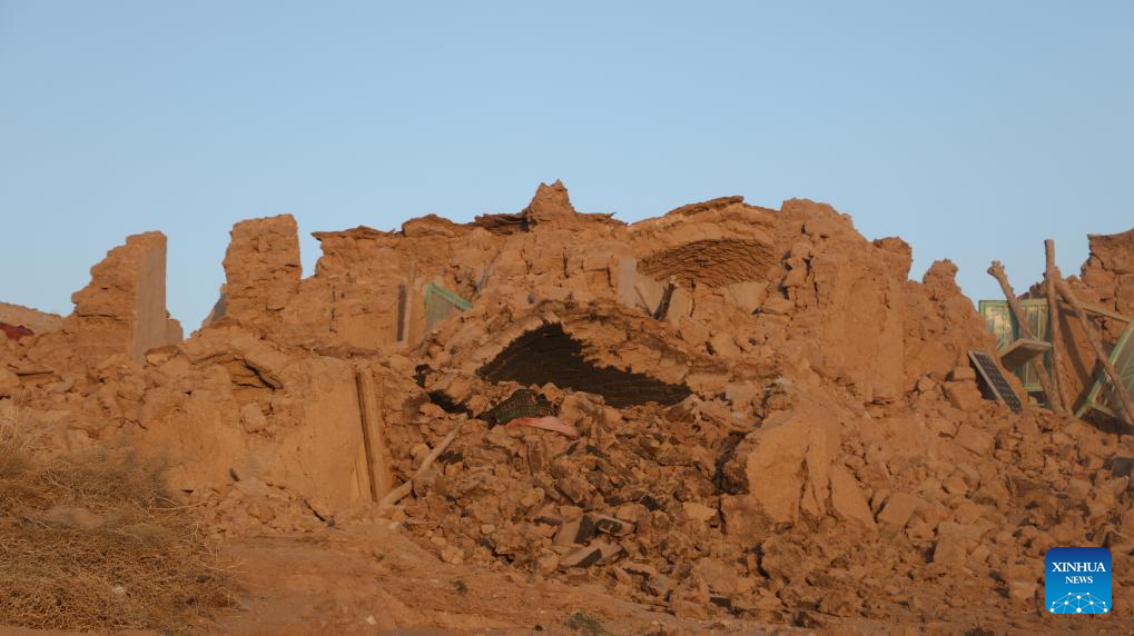 This photo taken on Oct. 7, 2023 shows ruins of dwellings after earthquakes in Herat Province, Afghanistan. At least 120 people were killed and around 1,000 others injured as earthquakes shocked Afghanistan's Herat and other western provinces, a local official from Herat told reporters. According to the China Earthquake Networks Center, two earthquakes with a magnitude of 6.2 jolted Afghanistan on Saturday. (Photo by Mashal/Xinhua)