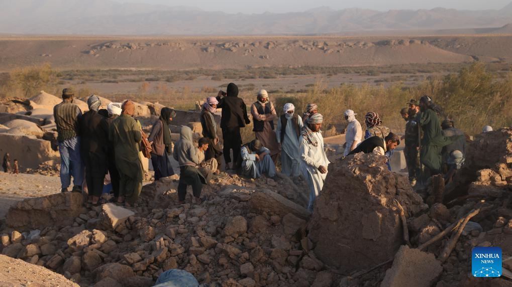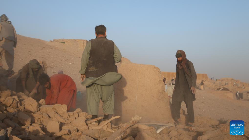 Rescue work is underway following earthquakes in Herat Province, Afghanistan, Oct. 7, 2023. At least 120 people were killed and around 1,000 others injured as earthquakes shocked Afghanistan's Herat and other western provinces, a local official from Herat told reporters. According to the China Earthquake Networks Center, two earthquakes with a magnitude of 6.2 jolted Afghanistan on Saturday. (Photo by Mashal/Xinhua)
