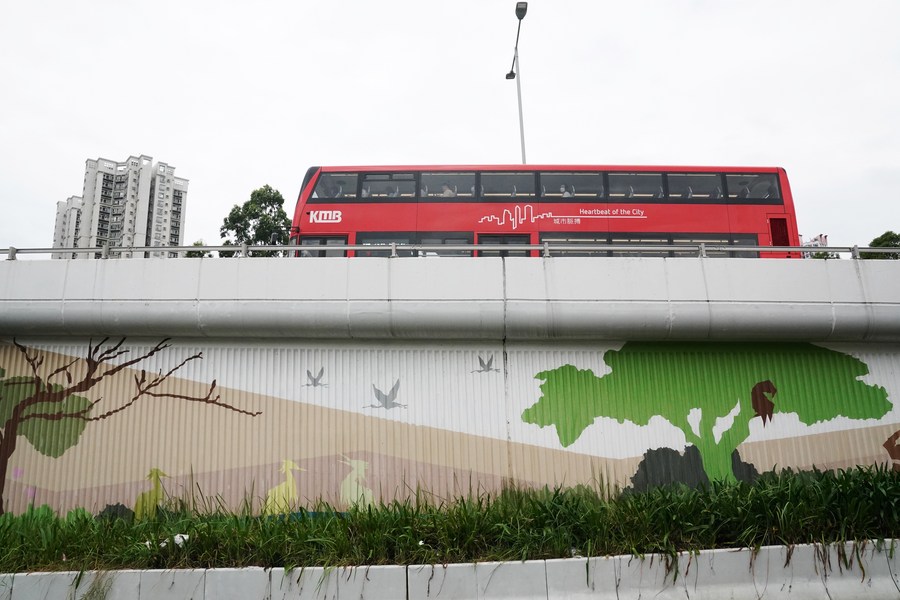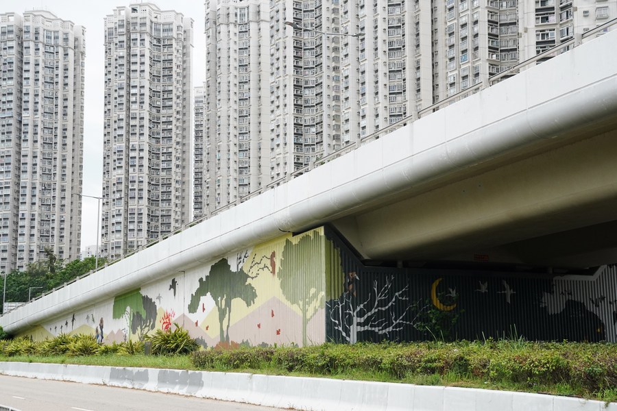 This photo taken on Aug. 31, 2023 shows a flyover themed "Hide and Seek, Tin Shui Wai" in Tin Shui Wai, Hong Kong. (Xinhua/Wang Shen)