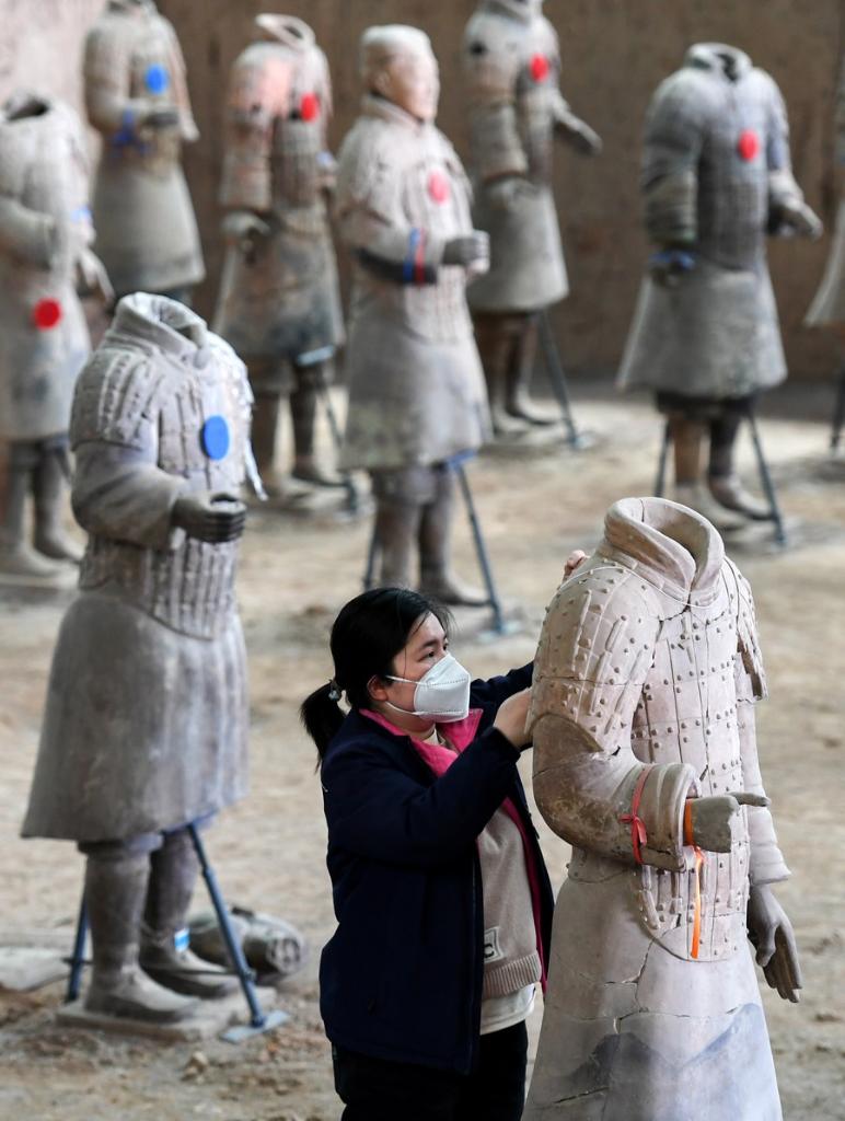 According to Lan, shortly after unearthing, each painted Terracotta Warrior must go through X-ray detection, ultrasonic scanning, 3D image acquisition and other procedures. Staff members clean and restore the pieces of the painted Terracotta Warriors using slim bamboo slips, scalpels, small brushes, etc. Every Terracotta Warrior also has its own ID. In recent years, Lan and his team have completed the restoration of more than 140 Terracotta Warriors.
