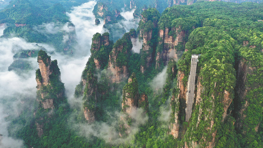 "We've put in significant efforts to protect heritage resources in Wulingyuan. Thanks to years of preservation, the lush and green hills clothed in wild profusions of vegetation are more beautiful," he says.