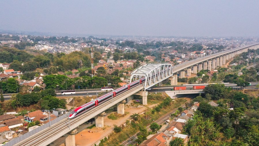 JAKARTA, Oct. 10 (Xinhua) -- A landmark project under the China-proposed Belt and Road Initiative, the 142-kilometer Jakarta-Bandung High-Speed Railway cuts the journey between Jakarta, the capital of Indonesia, and Bandung, Indonesia's fourth-largest city, from over three hours to roughly 40 minutes.