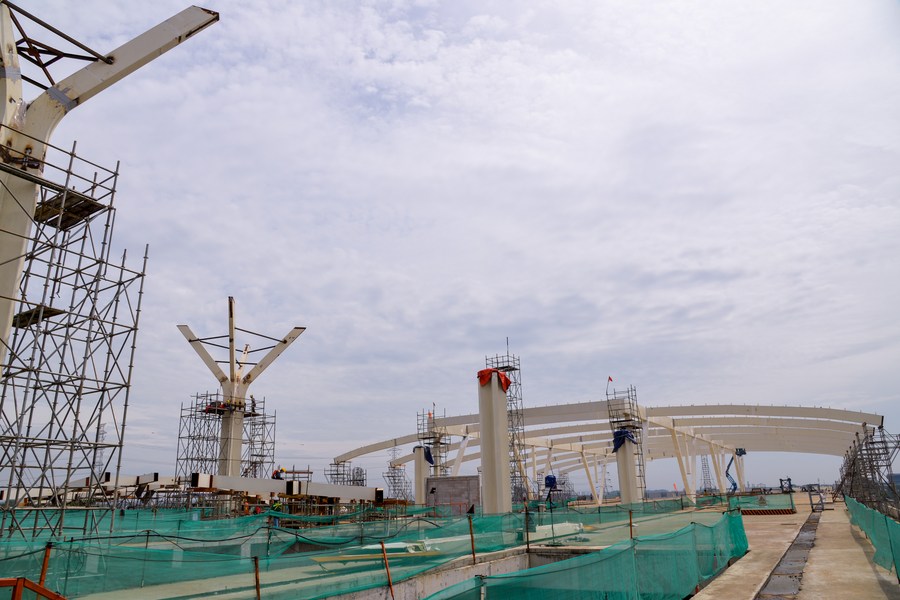 This aerial photo shows Tegalluar Station under construction in Bandung, Indonesia, Oct. 27, 2022.(Xinhua/Xu Qin)