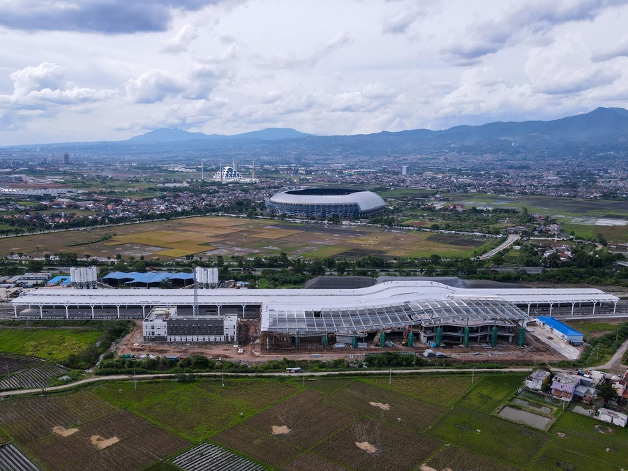 This aerial photo shows Tegalluar Station in Bandung, Indonesia, Sept. 1, 2023. (Xinhua/Xu Qin)
