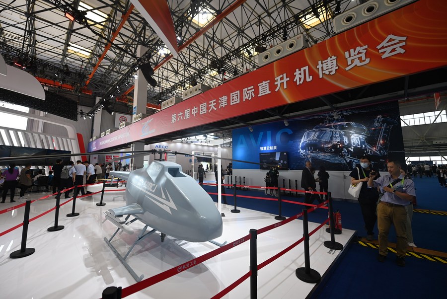 People visit the sixth China Helicopter Exposition in north China's Tianjin Municipality, Sept. 14, 2023. (Xinhua/Zhao Zishuo)