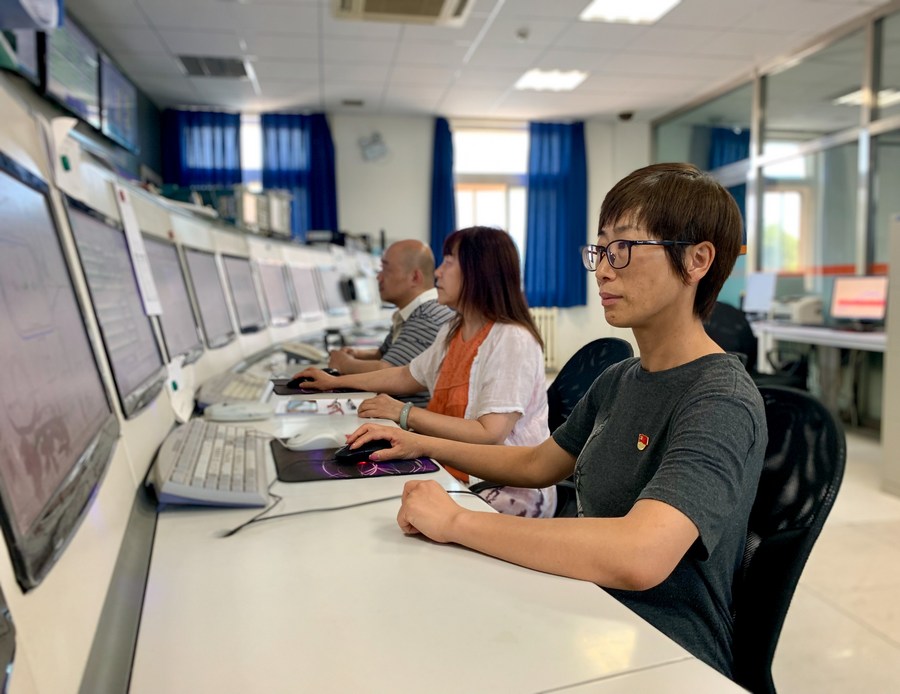 Researchers adjust electron beams in the central control room of Beijing Electron Positron Collider, Institute of High Energy Physics of the CAS, on July 1, 2019. (Xinhua/He Peiyuan)