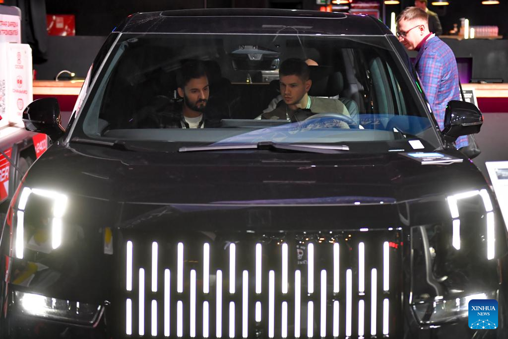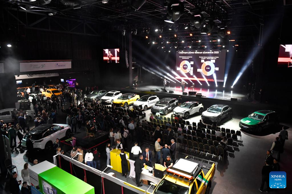 People visit the CarX exhibition-forum in Moscow, Russia, on Oct. 10, 2023. The event was held here from Tuesday to Wednesday. (Photo by Alexander Zemlianichenko Jr/Xinhua)