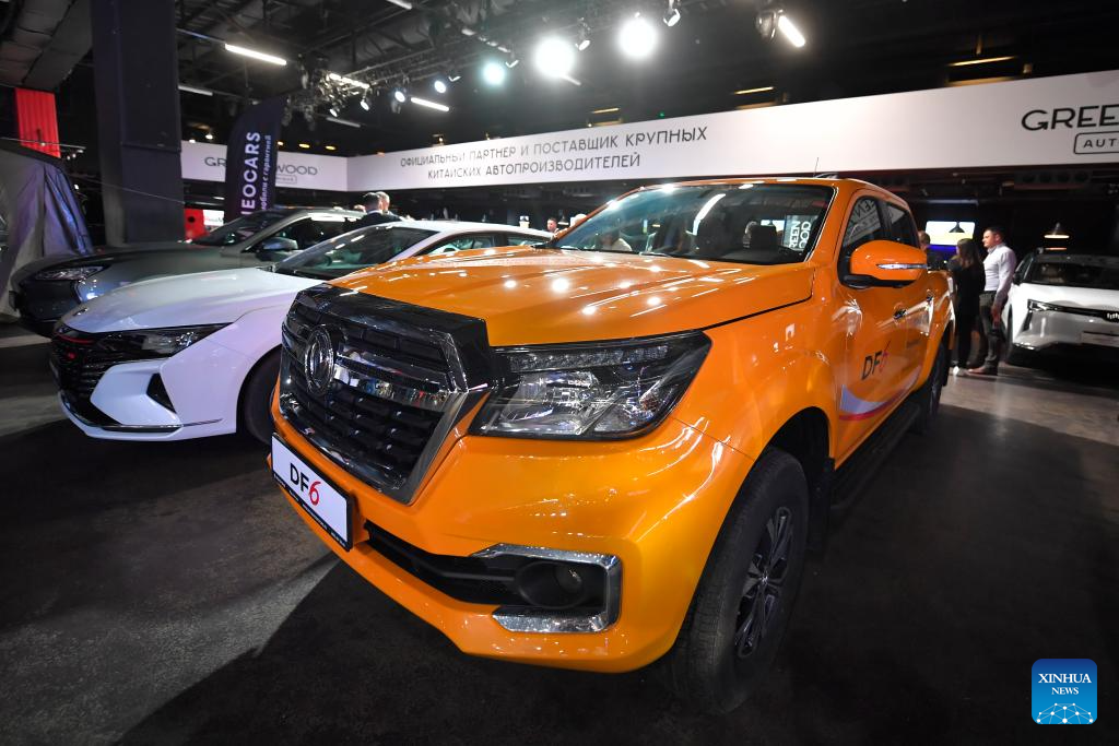 A vehicle from Chinese car brand Dongfeng Motor stands on display during the CarX exhibition-forum in Moscow, Russia, on Oct. 10, 2023. The event was held here from Tuesday to Wednesday. (Photo by Alexander Zemlianichenko Jr/Xinhua)
