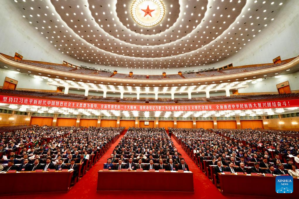 The 18th National Congress of the All-China Federation of Trade Unions (ACFTU) closes at the Great Hall of the People in Beijing, capital of China, Oct. 12, 2023. (Photo by Wang Xin/Xinhua)