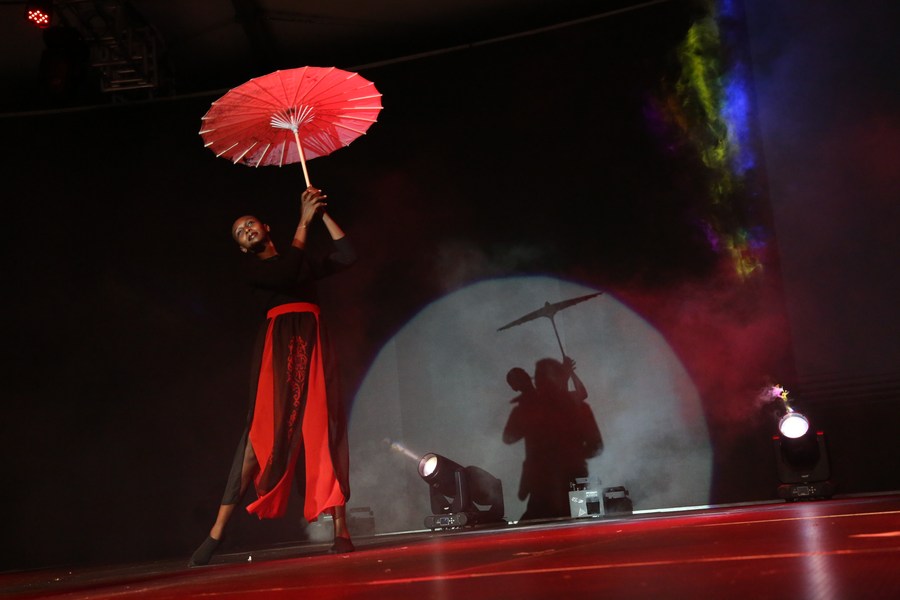 Sharon Emmanuel Munisi, a student at the University of Dar es Salaam, dances during the Chinese Mid-Autumn Festival celebrations in Dar es Salaam, Tanzania, Sept. 29, 2023. (Photo by Herman Emmanuel/Xinhua)