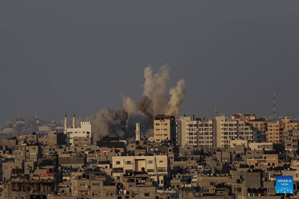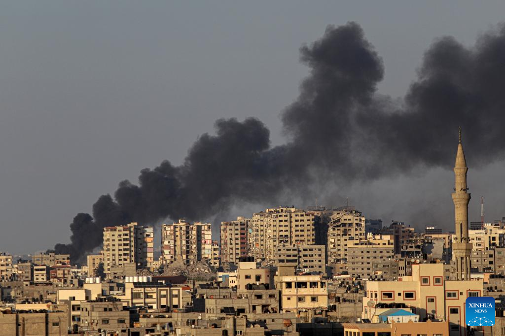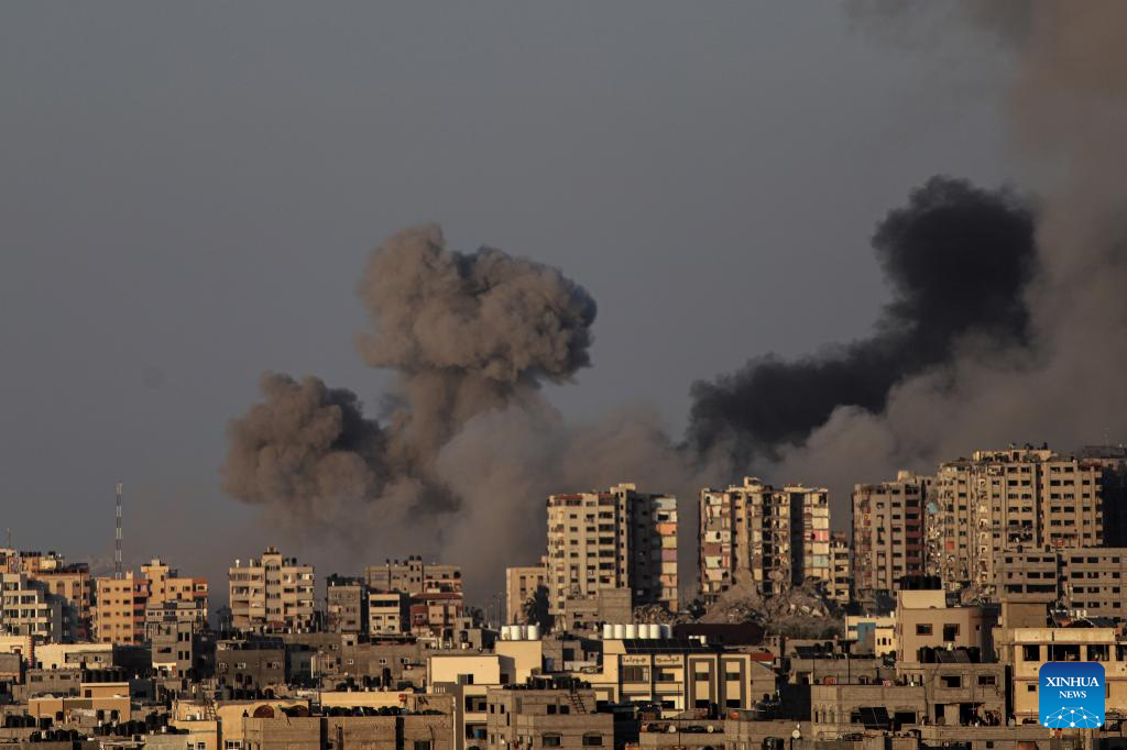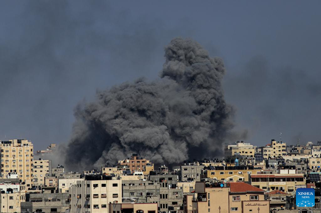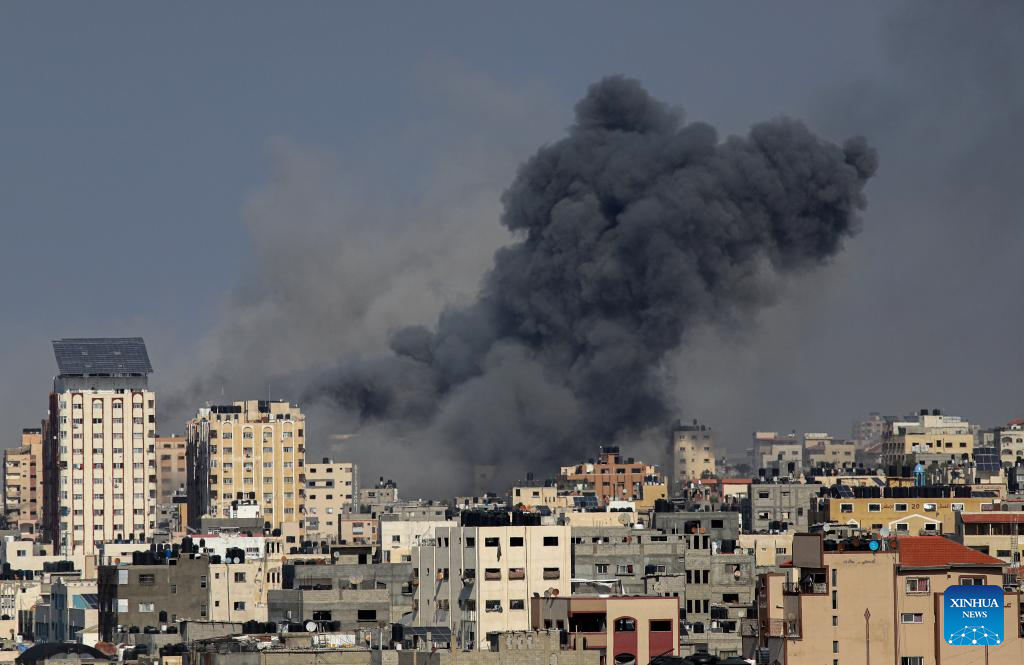 Smoke billows following an Israeli airstrike in Gaza City, on Oct. 12, 2023. Israel on Thursday continued its airstrikes on various areas of the Gaza Strip. (Photo by Rizek Abdeljawad/Xinhua)